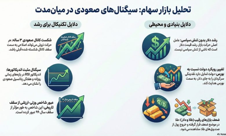 با وجود نوسانات محدود و فضای اصلاحی که در مقاطعی از بازار مشاهده میشود، چشمانداز بازار سرمایه در افق میانمدت همچنان مثبت ارزیابی میشود. این نگاه بر پایه ترکیب عوامل تکنیکال و بنیادی شکل گرفته و نشان میدهد اصلاحهای اخیر بیش از آنکه نشانه ضعف ساختاری بازار باشند، میتوانند بهعنوان بخشی از یک حرکت طبیعی در مسیر رشد تلقی شوند.